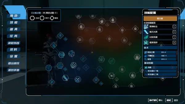 Изначально героиня обладает базовыми навыками: бег, прыжки, уклонения, стрельба из пистолета и боевая атака мечом. Постепенно её арсенал расширяется за счет новых умений, а в Evil Genome реализовано гибкое дерево талантов с 50 активными и пассивными навыками. Среди них есть те, что позволяют преодолевать сложные препятствия или добираться до ранее недоступных локаций. На точках сохранения можно не только сохранять прогресс, но и перераспределять очки навыков для адаптации под собственный стиль игры. Усиленная героиня способна клонировать саму себя, стрелять проджектайлами, прокладывать клинки, устанавливать ловушки и выполнять многое другое — все это делает игровой процесс динамичным и насыщенным.