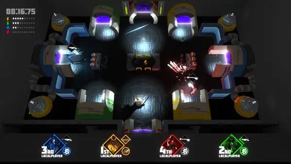 - Уникальный геймплей, сочетающий элементы стелса и аренного шутера