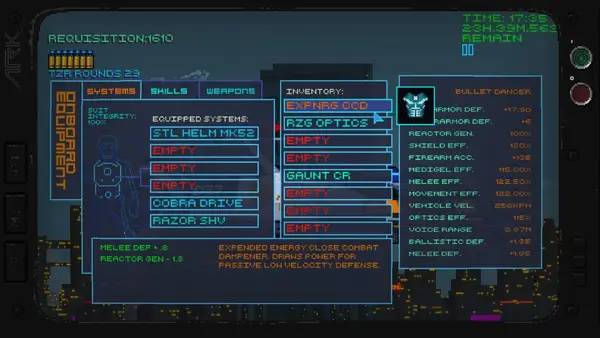 В miniLAW: Ministry of Law вы выступаете в роли элитного офицера – Констебля, который оберегает порядок в мрачном мегаполисе Нового Вавилона. Этот компьютерный мир, выполненный в стилях киберпанка и пиксельной 2D графики, захватывает своей атмосферой и динамикой. Вас ждут бесконечные стычки с бродягами, бандитами и гангстерами, которые пытаются разрушить последние опорные пункты цивилизации. В этой игре всё построено вокруг вашей способности адаптироваться: главный герой – киборг, что делает геймплей и сюжет уникальными. Во время боя могут повреждаться органы, однако экзоскелет продолжит функционировать, позволяя провести самореанимацию и вернуться в бой без длительных перерывов.