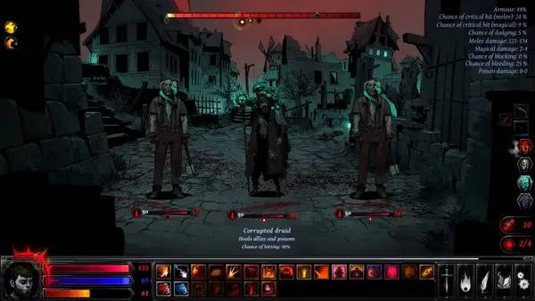 Игра Hellslave является ярким представителем жанра Dungeon Crawler, которая подарит уникальный опыт для любителей темного фэнтези и захватывающих приключений на ПК. В отличие от классических игр этого направления, в Hellslave действие не ограничивается лишь подземельями — игроки могут исследовать разнообразные локации через глобальную карту, перемещаясь между склепами, деревнями, кладбищами и другими интересными местами. Перемещение происходит с видом от первого лица, что усиливает погружение в игровой процесс. При встрече с врагами начинаются пошаговые бои, в которых представлены разнообразные монстры — зомби, демоны, призраки и другие существа, в том числе боссовые враги. После прохождения основной кампании открывается режим New Game +, увеличивающий реиграбельность и позволяющий вновь окунуться в мир Hellslave. В игре реализовано два дерева развития персонажа с пассивными и активными навыками, которые легко можно сочетать для создания уникальных билдов. Некоторые скиллы взаимодействуют между собой и создают слаженные синергии, что делает каждое прохождение уникальным. В процессе открываются новые способности, расширяющие возможности бойца.