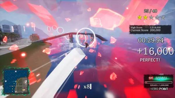 Геймплей включает два основных испытания: полет и вызов. В первом пользователь должен достигать контрольных точек за ограниченное время, преодолевая весь город, а во втором — уничтожать объекты и проходить трассы, избегая препятствий. Постепенное развитие персонажа происходит за счет улучшений способностей или открытия новых умений. Бои с боссами являются особенно захватывающими, проходя их в динамичном воздушном сражении. В случае неудачи враг способен полностью разрушить город, что добавляет напряжения и реализма в игровой процесс.