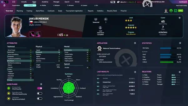 - Возможность выбрать стратегию развития спортсменов и управлять их карьерой