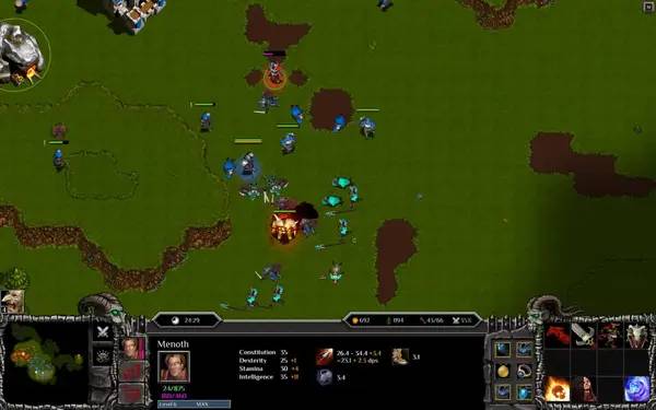 - Возможность прокачки героев и юнитов, а также продвинутые механики производства