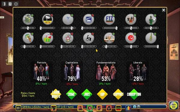 Особенности игры включают разработку внутренней политики, внешнеполитических альянсов и секретных операций, таких как создание ядерного оружия. В Rogue State каждый выбор имеет значение, а баланс между различными группами и странами требует постоянного внимания и своевременных решений. Игра подойдет для тех, кто любит глубокие сценарии и нестандартные подходы к развитию своей страны.
