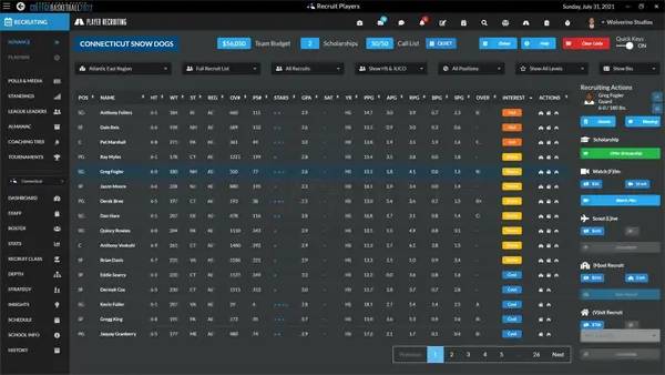 Draft Day Sports: College Basketball 2022 – это увлекательный баскетбольный менеджер, который отличается от большинства аналогичных игр своей уникальностью и реализмом. В этом симуляторе вы управляете студенческой командой колледжа, а не профессиональными игроками или звездами. Основное преимущество проекта – это возможность контролировать не только игровые моменты, но и такие важные аспекты, как учеба и поведение студентов. В игре реализована система отслеживания успеваемости спортсменов, что влияет на их участие в турнирах. Здесь соревнования проходят между университетами и колледжами, создавая атмосферу настоящего студенческого баскетбольного сезона.