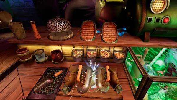 Игровой процесс требует быстроты и точности — чем быстрее вы справляетесь с заказами, тем выше чаевые и уровень дохода. Деньги необходимы для приобретения нового оборудования и улучшения существующих кухонных приборов, что позволяет ускорить процесс готовки и расширить меню, включающее более 30 уникальных позиций. Каждая из них требует индивидуального подхода и внимания к деталям, что делает Horror Bar VR не только суровым симулятором, но и стратегической игрой, требующей навыков и креативности.