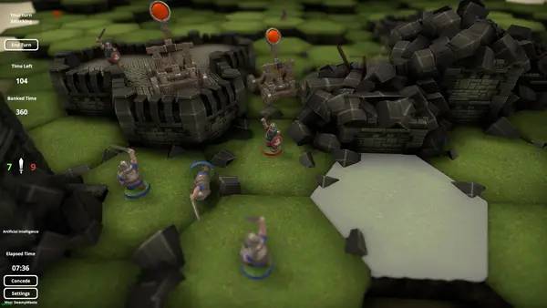 В Warpaint игрокам предстоит сражаться на гексагональном поле, управляя армией гномов. Это стратегия в жанре настолки, где необходимо передвигать фигурки и стреляющими катапультами наносить урон противнику. Важной задачей становится грамотное планирование тактики, правильное позиционирование и своевременные действия, которые помогут одержать победу. Передвижение по карте включает захват новых территорий и отвоевание уже захваченных участков, что создает динамичную и насыщенную событиями игровую атмосферу.