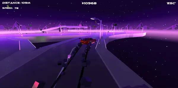 Deep-геймплей включает в себя не только классические заезды, но и множество дополнительных функций. Например, удерживая кнопку L SHIFT, можно активировать замедление времени, в то время как нажатие F или SPACE позволяет выполнить суперпрыжок. В воздухе, при сбрасывании скорости ниже 50 единиц и удерживании S, автомобиль можно заставить делать перевороты, нажимая E. В настройках есть система для добавления собственных музыкальных плейлистов, что превращает каждую гонку в уникальное аудиовизуальное шоу, где окружающая среда динамически реагирует на выбранную музыку.