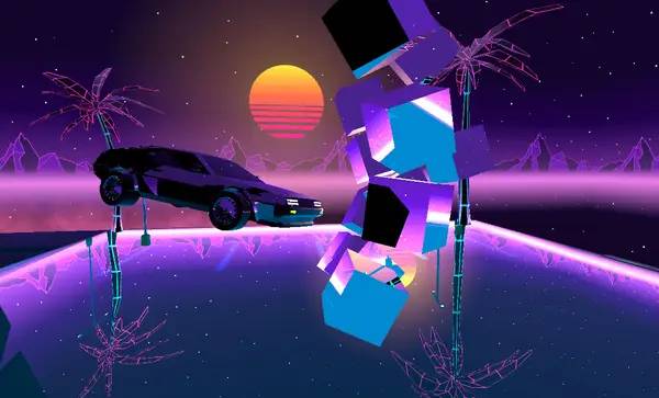 - Яркий визуальный стиль в стиле синтвейв и современная графика