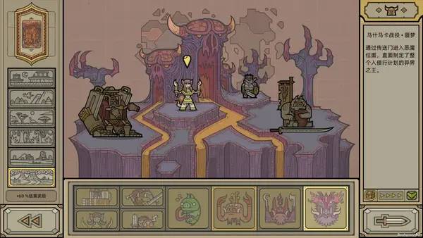 Геймплей выполнен в форме перемещения по карте, где каждый шаг диктует развитие событий. Перед основными сражениями вас ждут три уровня обучения с наставником: первый — научит вас драться и использовать навыки, второй — управлять армией, а третий — работу с рунами и их влиянием на бой. В игре доступны различные типы существ: танкующие, наносящие урон и поддерживающие, а также герои, способные лечить себя и товарищей с помощью еды из инвентаря. Постепенное повышение уровня «лидерства» позволяет привлекать более сильных наемников высокого ранга.