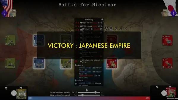 Игровой процесс SGS Operation Downfall сочетает элементы карточной игры и пошаговой стратегии, что делает каждую партию уникальной. Можно играть как в одиночку с ботом, так и вдвоём за одним компьютером, против другого игрока. В распоряжении две фракции: союзники и японцы. Союзные войска обладают мощной поддержкой ВМС и ВВС, а у японцев — прочная оборона и стойкое население, готовое к самопожертвованию. Возможность выбрать разные сценарии и стартовые позиции позволяет варьировать стратегию на каждом этапе. Продолжительность партий составляет от 10 до 27 ходов — примерно за одну неделю реального времени вы сможете пройти весь цикл событий и принять важные решения.