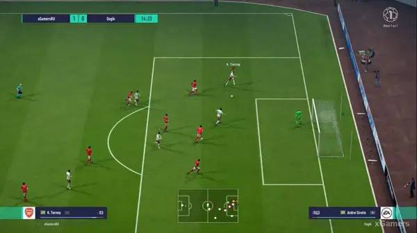 - Максимально реалистичная графика и анимация, которая передает атмосферу настоящего футбольного матча.