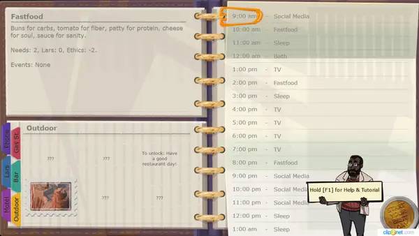 Геймплей включает управление распорядком персонажа в условиях, напоминающих временную петлю — ключевая тема игры. В ходе прохождения вы сталкиваетесь с системой, похожей на колоду карт, где каждый выбор влияет на дальнейшие события и развитие ситуации. Выполнение задач, таких как тренировки или посещение терапевтических сеансов, позволяет изменить состояние персонажа — например, уровень утомления или его настроение, а также закрывать необходимые бытовые потребности благодаря вендинговым автоматам. Продвижение по сюжету открывает новые занятия, расширяет возможности взаимодействия и вводит забавные элементы, внося разнообразие в игровой процесс.